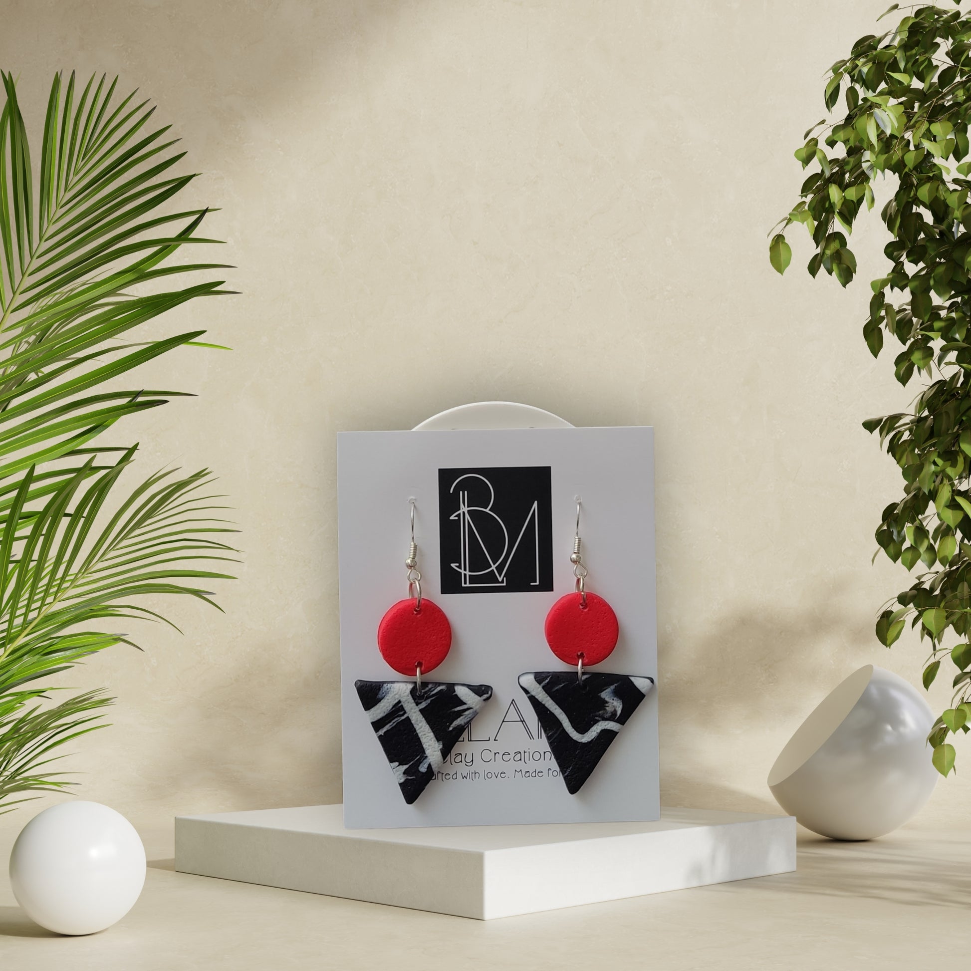 The CRIMSON PEAK earrings combine fiery red with marble-black triangles in a daring geometric design. Playful yet edgy, they bring an artistic flair to any outfit. Lightweight and modern, they’re perfect for bold winter statements.