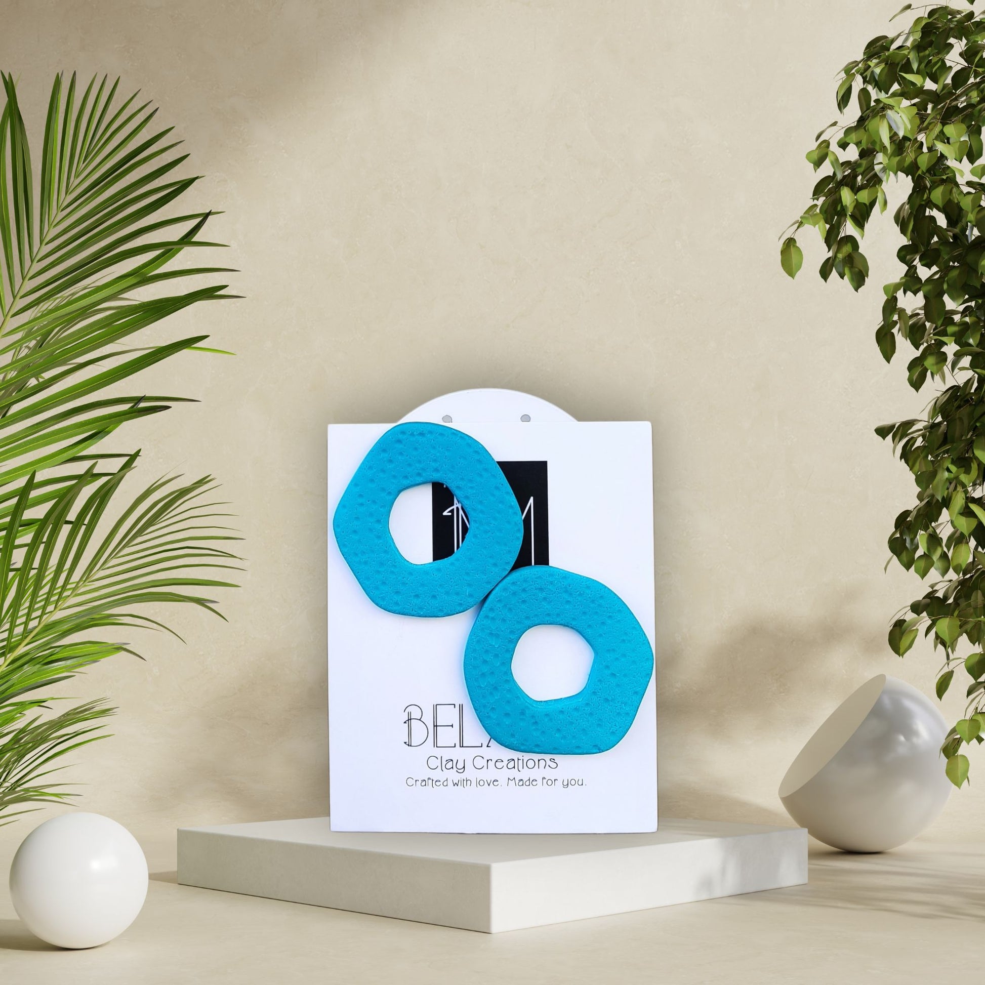 Αυτά τα σκουλαρίκια σε έντονο aqua blue ξεχωρίζουν με την ανάγλυφη υφή τους και το γεωμετρικό σχήμα που τραβά όλα τα βλέμματα.
