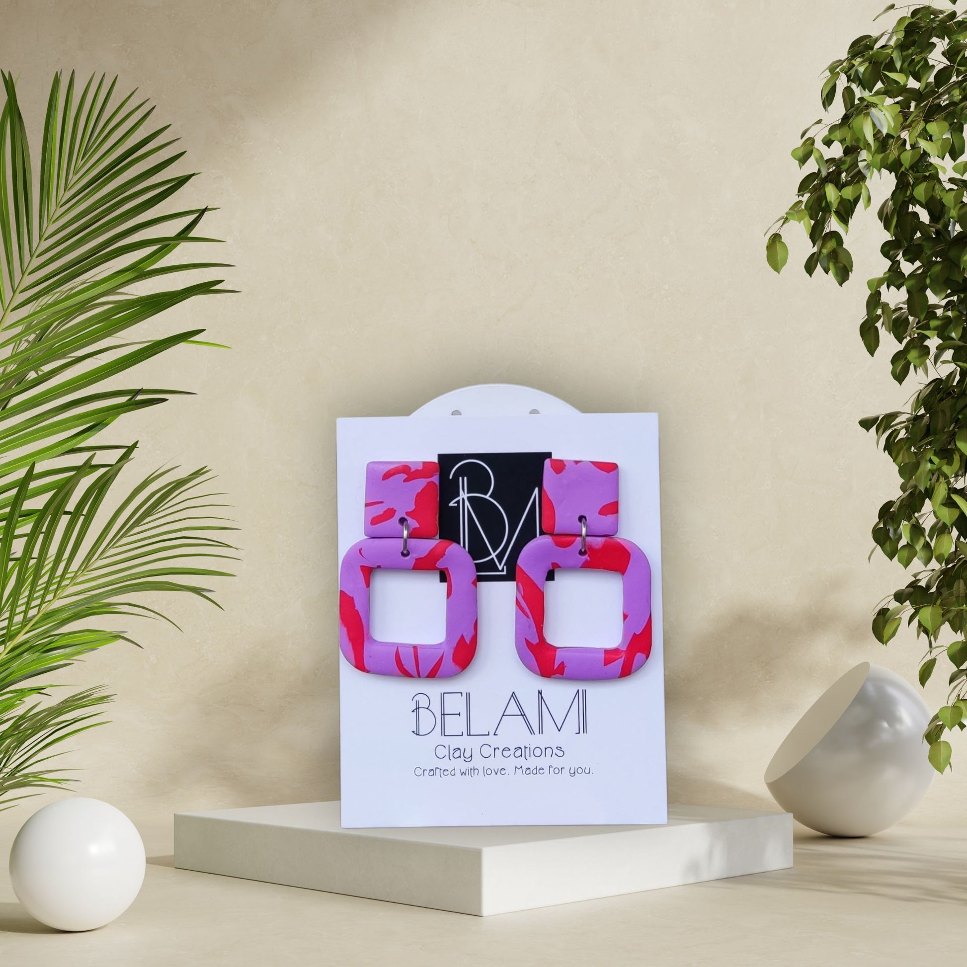 Ζωηρά, παιχνιδιάρικα και γεμάτα στυλ. Τα CANDY CRUSH είναι τετράγωνα σκουλαρίκια από πηλό με swirl μοτίβο σε ροζ και λιλά.