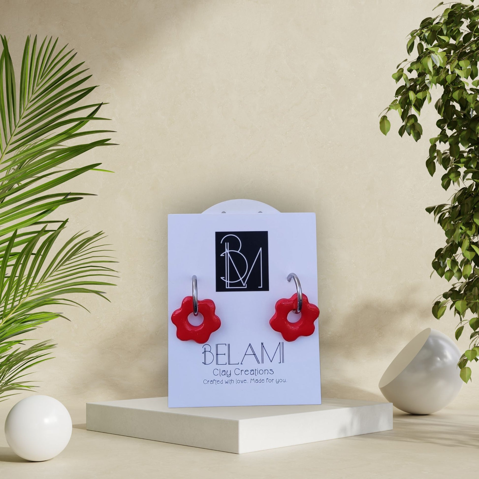 Τολμηρά, παιχνιδιάρικα και γεμάτα καλοκαιρινή γοητεία. Αυτά τα λουλουδένια hoops σε κόκκινο χρώμα με ασημί λεπτομέρειες δίνουν ένταση και φρεσκάδα σε κάθε εμφάνιση.