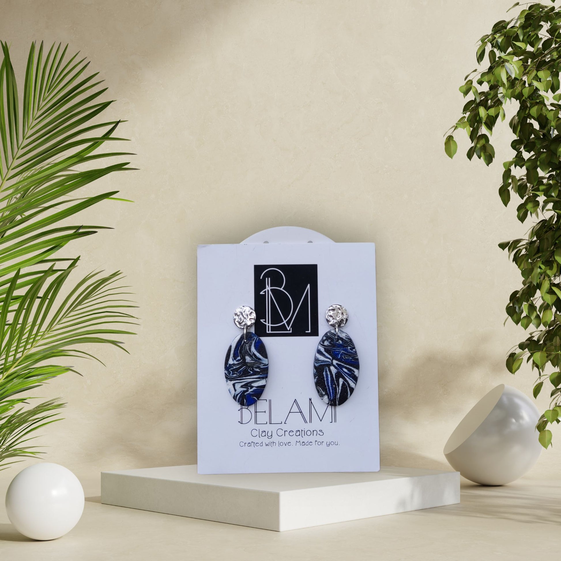 MOONSTONE WAVE – Σκουλαρίκια navy swirl & ασημένια βάση