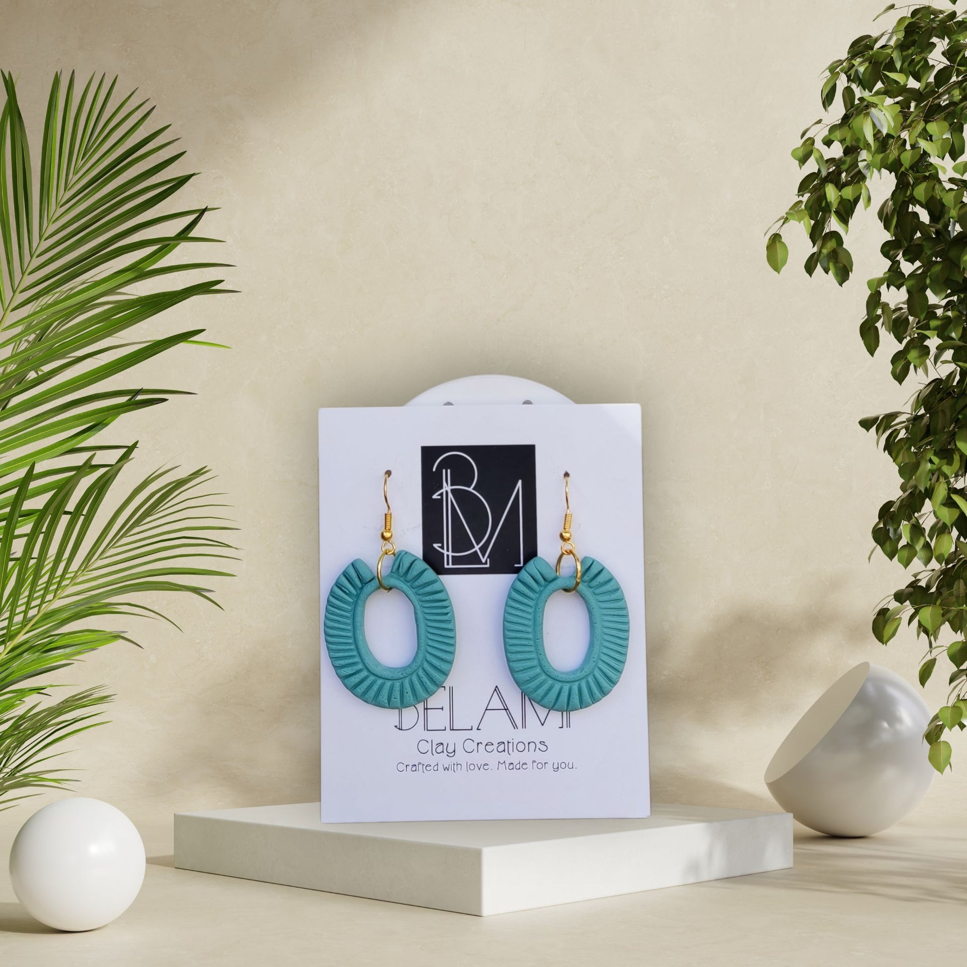 Χειροποίητα σκουλαρίκια από πολυμερικό πηλό με ανάγλυφες λεπτομέρειες που θυμίζουν υφή κοχυλιού. Απαλό τιρκουάζ, ανάλαφρα και ιδανικά για καλοκαιρινές εμφανίσεις.