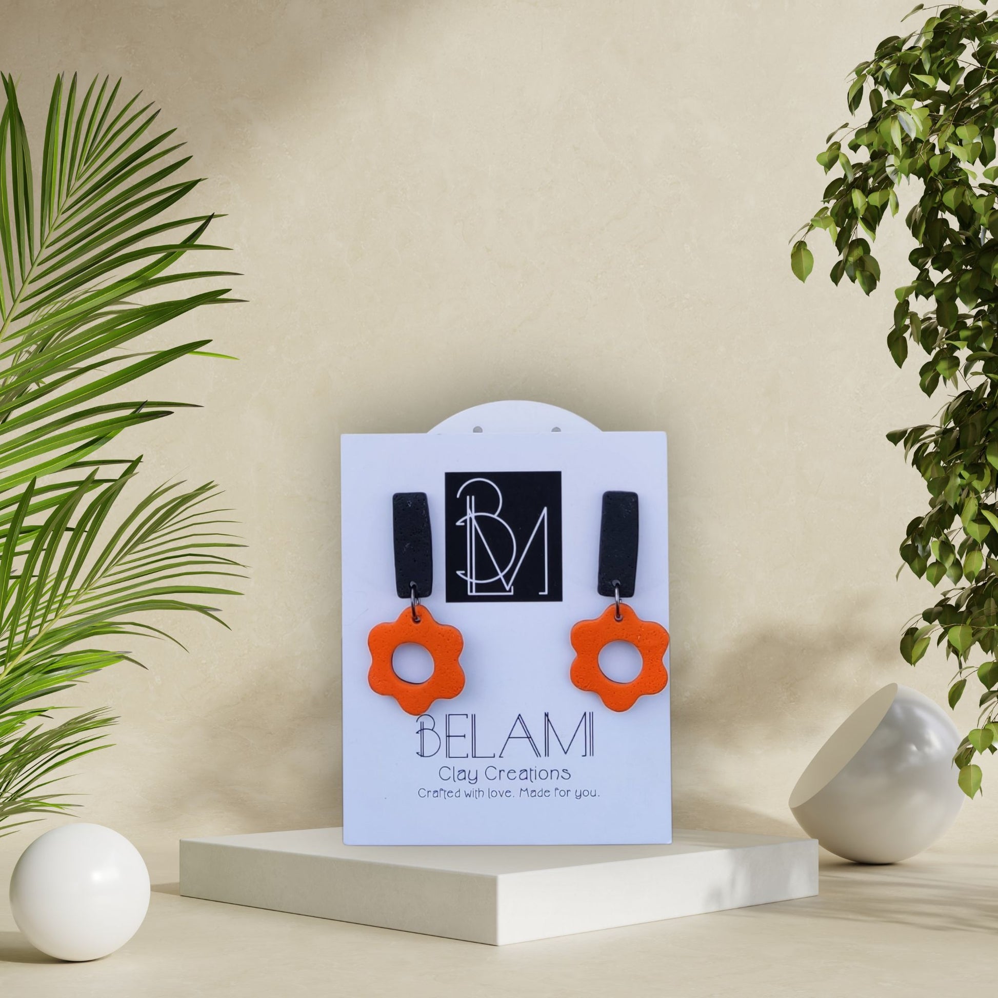 Φωτεινά, χαρούμενα και απόλυτα γοητευτικά. Αυτά τα σκουλαρίκια drop διαθέτουν έντονο πορτοκαλί λουλουδένιο σχέδιο με κομψό μαύρο επάνω μέρος, δημιουργώντας παιχνιδιάρικη αντίθεση που δίνει ζωντάνια στο καλοκαιρινό σας στυλ.