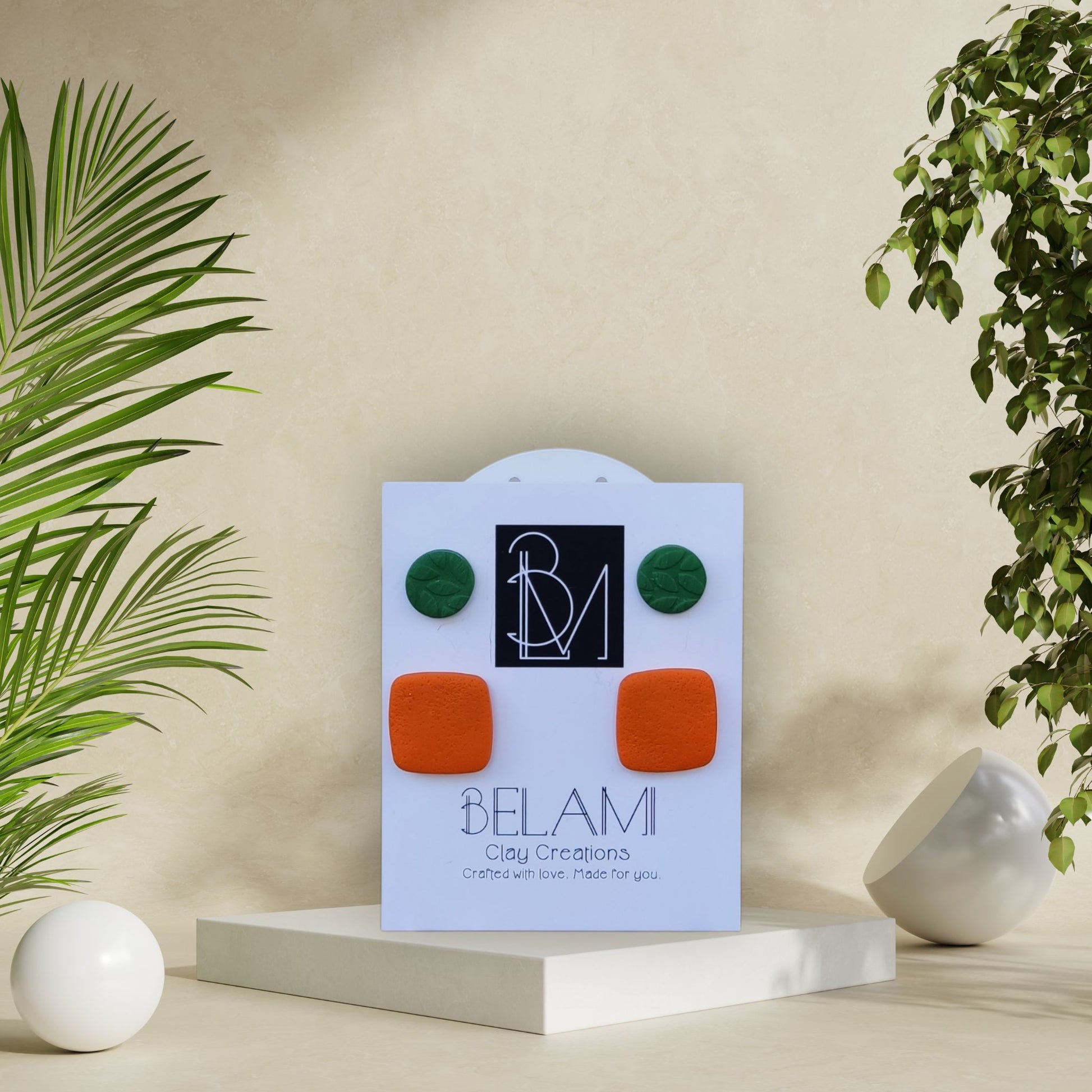 Ένα παιχνιδιάρικο καλοκαιρινό σετ για ζωηρές εμφανίσεις. Το TROPICAL DUO περιλαμβάνει ένα ζευγάρι πράσινα σκουλαρίκια με ανάγλυφα φύλλα και ένα ζευγάρι πορτοκαλί τετράγωνα σκουλαρίκια. Ιδανικό για mix & match με τα σύνολά σας.
